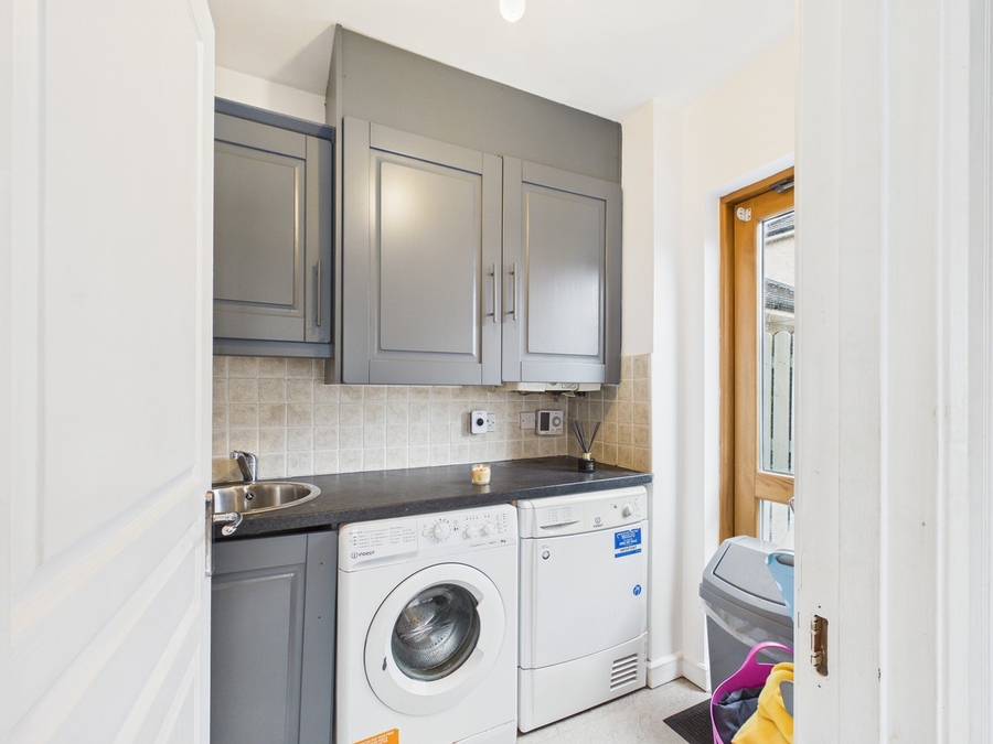 To the rear, the spacious kitchen and dining area form the heart of the home, again with direct garden access. A separate utility room provides practical side access.
